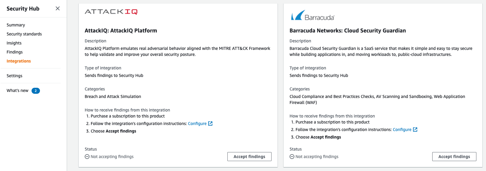 Good news! There are a huge number of supported services that integrate right into AWS Security Hub. This means the findings from a 3rd party scanner can be brought in and just as easily used to make notifications in Slack and/or send event alerts to Splunk. For a full list of native AWS and 3rd party integrations, you can visit the AWS Security Hub Documentation here.