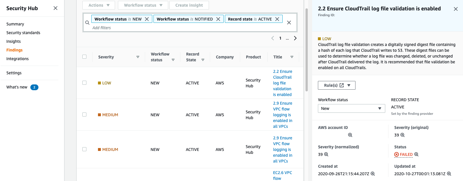 AWS Security Hub Findings